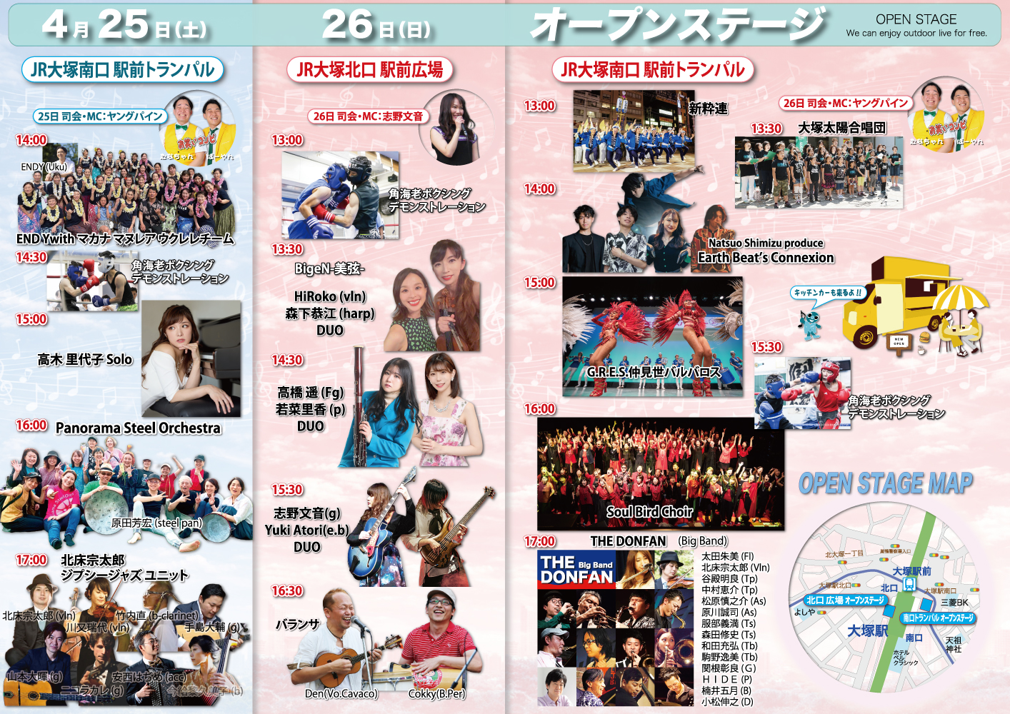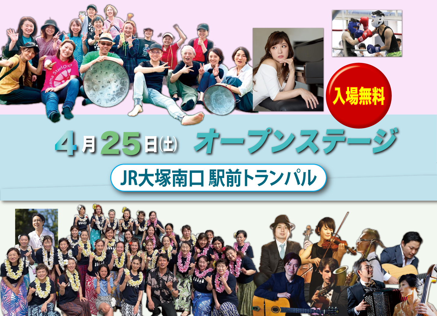 JR大塚駅の北口広場・南口駅前トランパルで多くのアーティストが演奏いたします!