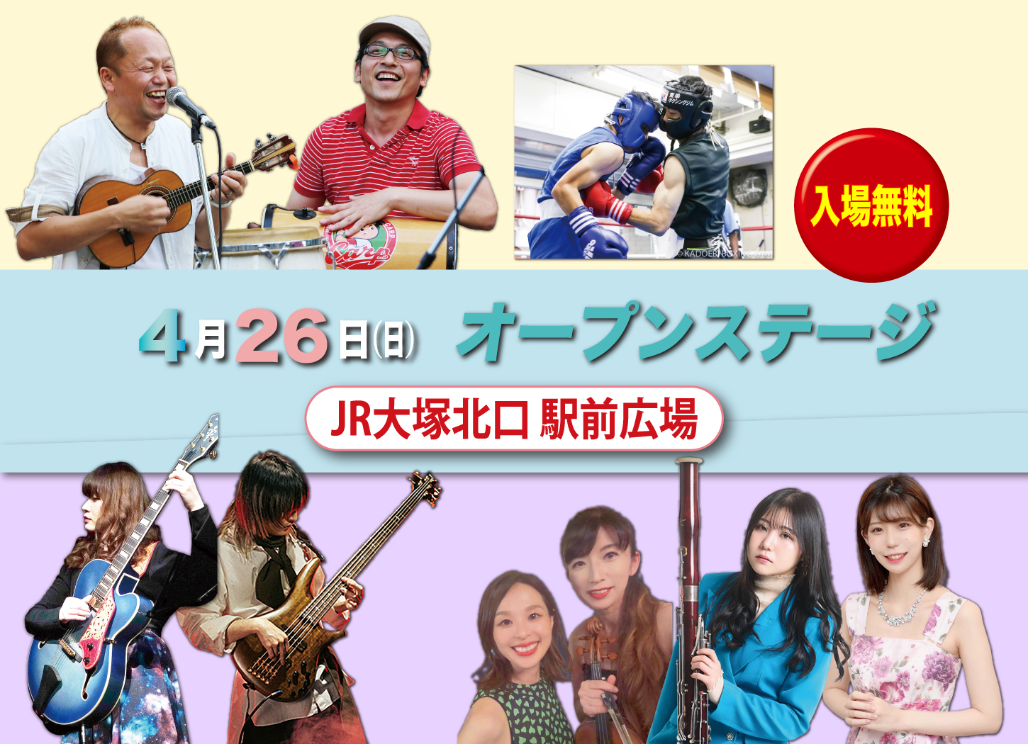【オープンステージ】2日目: 北口駅前広場 2026.03.25OMA 大塚ミュージックフェスティバルのオープンステージは入場無料!JR大塚駅の北口広場・南口駅前トランパルで多くのアーティストが演奏いたします! オープンステージ2026スケジュール 投稿者: OMA サイト管理担当OMA